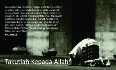 Rasulullah SAW bersabda: Jangan sekali-kali seseorang di antara kalian merendahkan dirinya bila ia melihat suatu perkara menyangkut (agama) Allah yg harus ia utarakan, lalu ia tidak...
